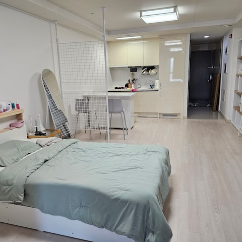 11자형 주방으로 되어 있고 큰 창문이 있는 주방입니다, 침실과 주방창의 위치는 일직선으로 되어 있어 바람길이 자연스럽게 만들어져 환기시키기에 좋을 것 같습니다.블랙앤화이트의 이 집 거실 모습입니다, 리빙창에서 바라보면 현관문까지 보이는데 아주 심플한 거실가구만 둔 원룸가구 배치가 느껴지시나요, 보시는 것처럼 이렇게 가구를 놓으면 답답함 없이 넓어 보이죠~ 바닥러그도 침대가 놓인 곳까지 깔아주지 않았다는 것에 긍정적인 영향을 주고 싶어요. 만약에 끝까지 깔면 좁아 보이고 공간이 분리되어 보이지 않기 때문입니다.현관 옆에 마련된 작은 미니 드레스룸도 있고 거실 창문 앞에는 원형 테이블을 두어 다양하게 이용하도록 하였습니다.원룸 가구 배치는 아무래도 공간이 넓지 않기 때문에 키 큰 장식장을 두는 것도 신중해야 하는데 키 큰 수납장이나 유리 장식장은 집 옆자리에 창문을 가리지 않는 자리가 가장 좋습니다.그리고 폭도 넓지 않게 해주셔야 여유로운 공간확보가 가능합니다.헤드보드를 따로 두지 않아도 되는 이 댁의 집 구조는 아마 집을 보러 오는 사람들에게 인기가 많을 것으로 예상되는 풍경입니다.작은 집에서는 침대 보드를 생략해야 할까 말까 하는 상황도 사실 있거든요.현관은 그다지 좁지 않은 공간으로 보이지만 여기에는 미니 드레스룸도 있어서 편리하게 이용하고 싶어요, 왼쪽에 보이는 네모난 창틀 너머에는 침실 방인데 부엌 창문으로 들어오는 빛이 여기까지 들어온다는 거죠. ㅎㅎ블랙&화이트로 잘 꾸며진 현관에도 선반을 두고 신발이나 책, 물건 등을 보관하고 있어요, 집은 비록 넓은 집은 아니지만 공간마다 알차고 효율적으로 사용한 모습 그대로 보여준 댁이에요, 천천히 살펴보면 따라해보고 싶은 부분이 꽤 많으실거에요^^블랙&화이트로 잘 꾸며진 현관에도 선반을 두고 신발이나 책, 물건 등을 보관하고 있어요, 집은 비록 넓은 집은 아니지만 공간마다 알차고 효율적으로 사용한 모습 그대로 보여준 댁이에요, 천천히 살펴보면 따라해보고 싶은 부분이 꽤 많으실거에요^^출처 : Pinhttps://www.youtube.com/shorts/W_6xiVYg0e8